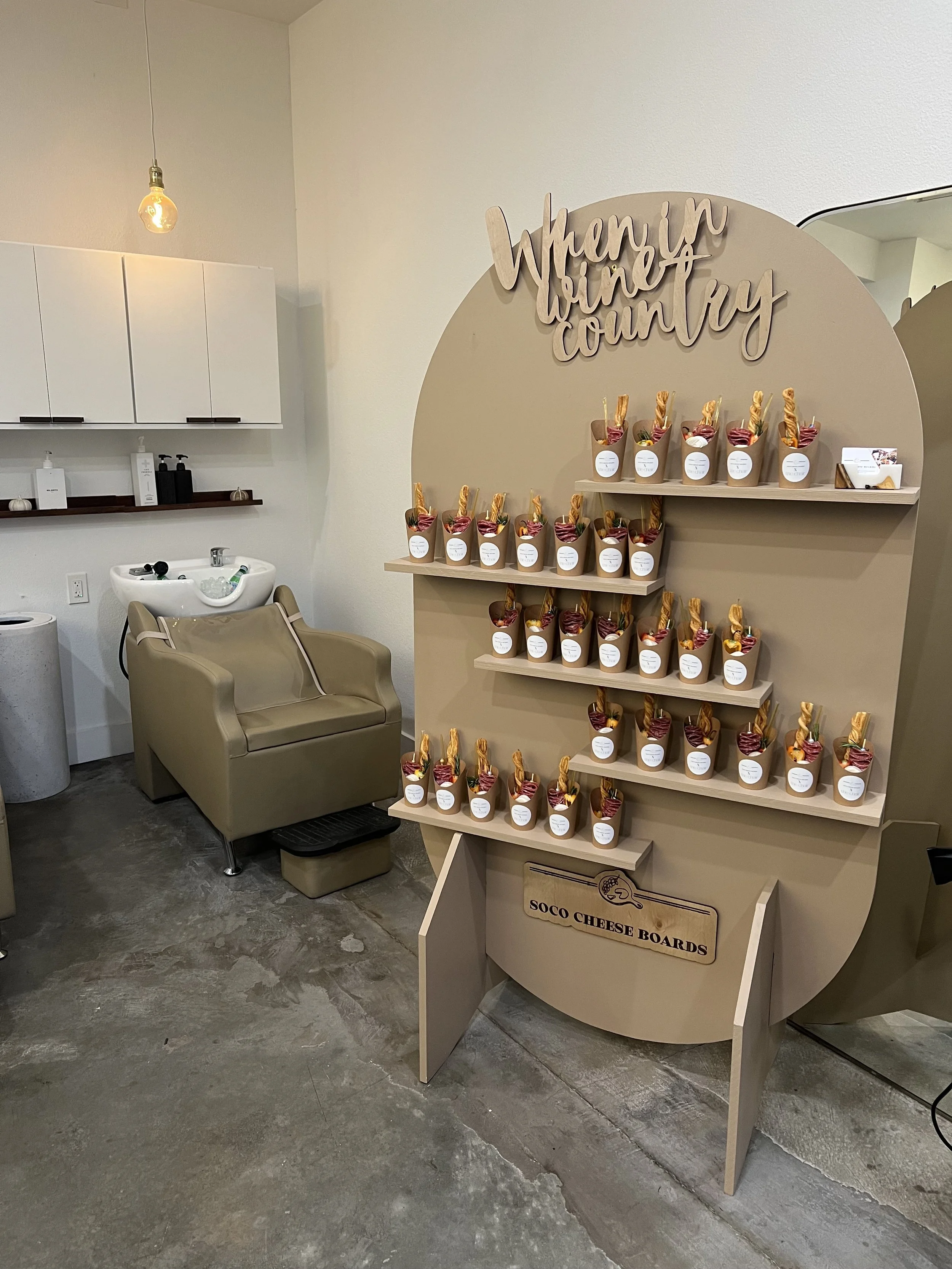 Rent our stand to display your treats from charcuterie to desserts! Multiple custom signage options available to fit your event.